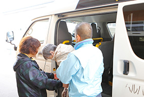 歩行など不自由な方でも安心していただけるよう、専用の車でご自宅とデイサービス間を送迎いたします。